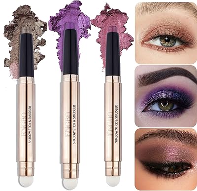 Elevate eye makeup with 3pcs Cream Eyeshadow Sticks Set. Waterproof, long-lasting, and smudge-proof, these brown, purple, and orchid shades offer shimmer and matte finishes for a bright, vibrant look. Soft smudger for easy application and blending. Perfect for everyday use.