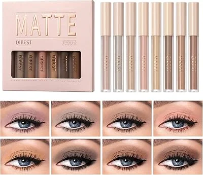 “8 colors liquid matte eyeshadow set, nude black smokey eyeshadow, cream eyeshadow primer, waterproof quick drying eye brightener, highlighter blusher, eye shadow makeup. Enhance your eyes with vibrant colors, long-lasting formula, and easy application.”