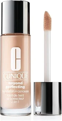 Clinique Beyond Perfecting Liquid Foundation + Concealer, full coverage for flawless skin, suitable for dry, combination to oily skin types, natural finish.