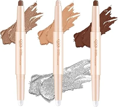 Elevate your eye makeup with this 3-piece cream eyeshadow stick set in earth tones. Double-ended pencils feature 2-tone glitter gradient shimmer, waterproof & long-lasting. Perfect for women & girls seeking effortless, stunning eye looks.