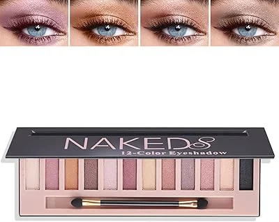 “12 Colors Naked Eyeshadow Palette, Natural Matte Nude Eyeshadow, Highly Pigmented, Long Lasting, Waterproof, Smokey Glitter Eye Makeup with Brush. Enhance your eyes with this versatile, highly pigmented eyeshadow palette featuring 12 shades of natural matte and shimmer colors.”